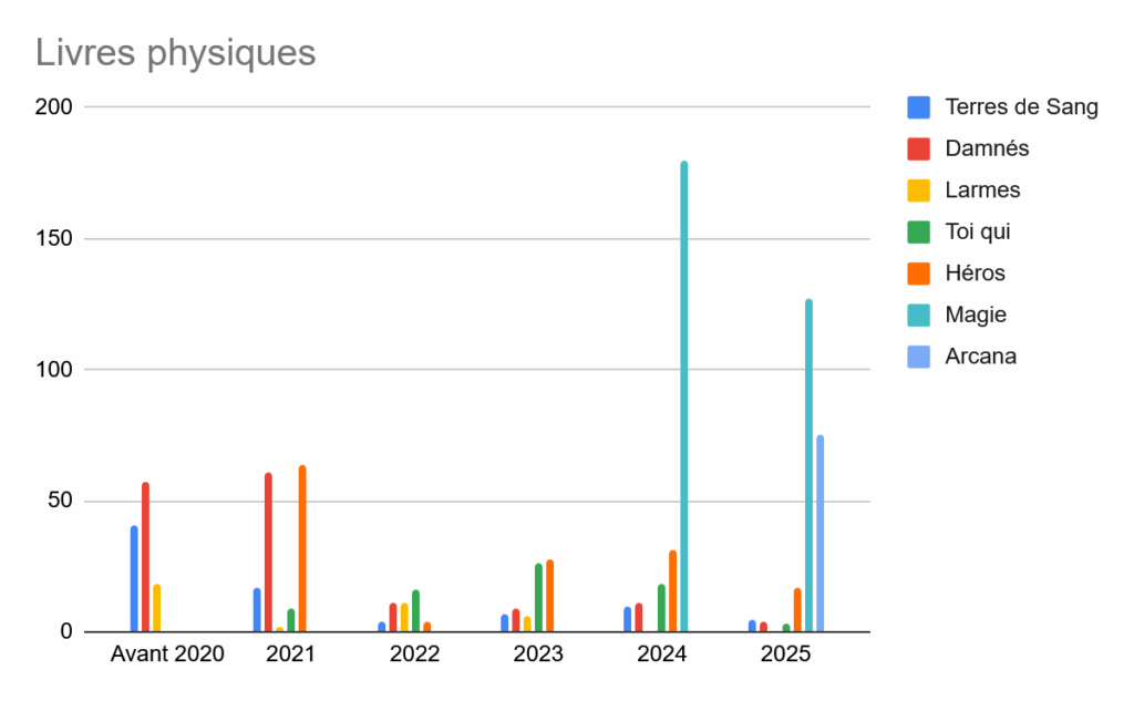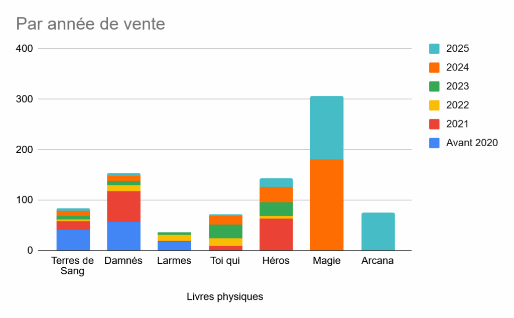 - En termes de ventes, nous avons vendu plus d’une centaine de Magie de Minuit et près de 70 Arcana cette année. Environ 50% et 30% respectivement des ventes ont été réalisées en convention.